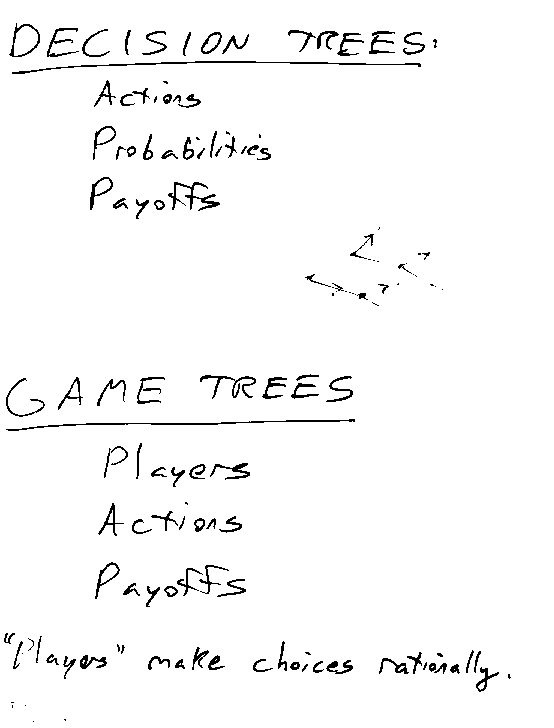 - Decision trees vs. game trees-- the